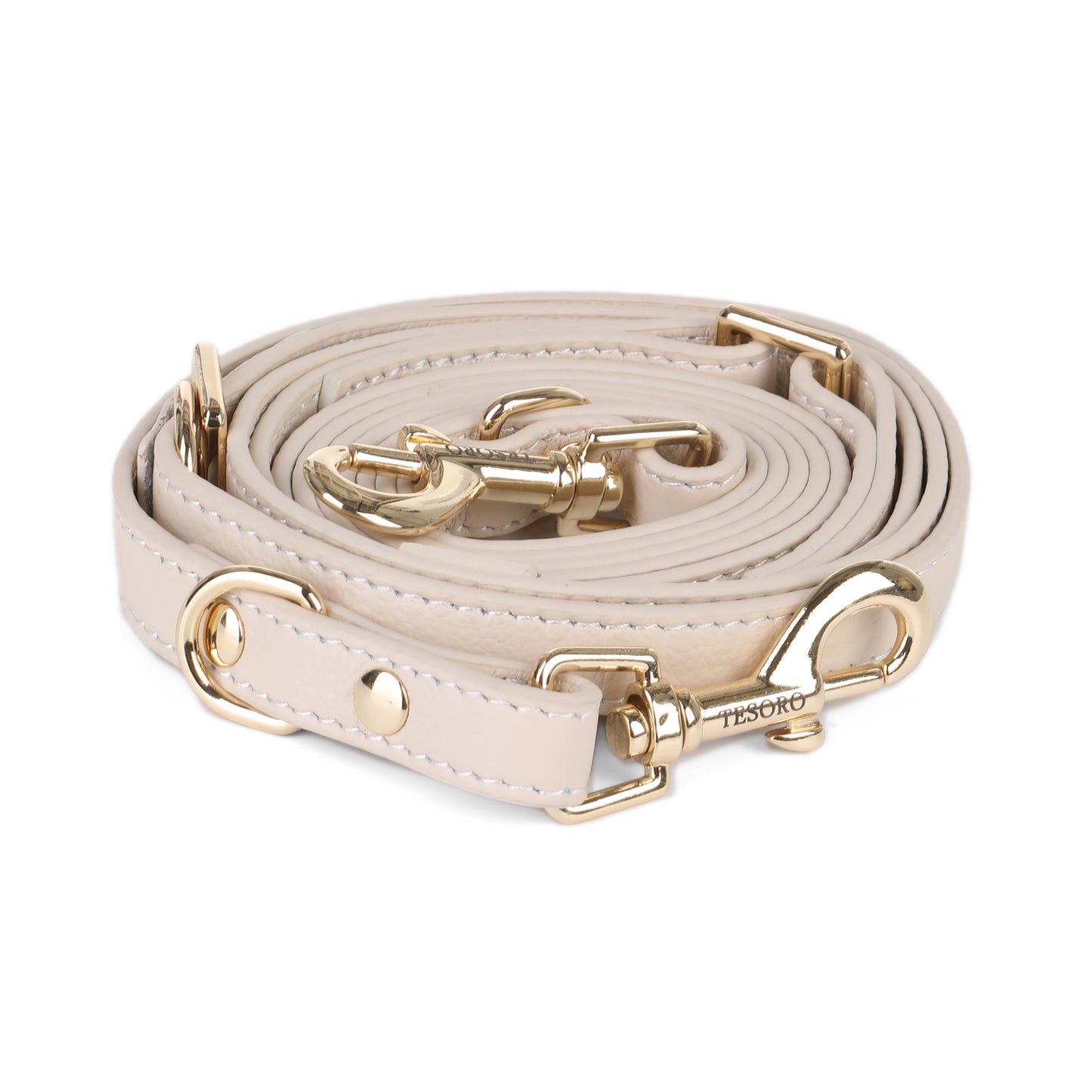 The Tesoro leather dog leash for small dogs combines versatility, comfort, and refined design for everyday use. This adjustable dog leash offers a hands-free option while maintaining control and ease during walks, travel, or daily routines.
